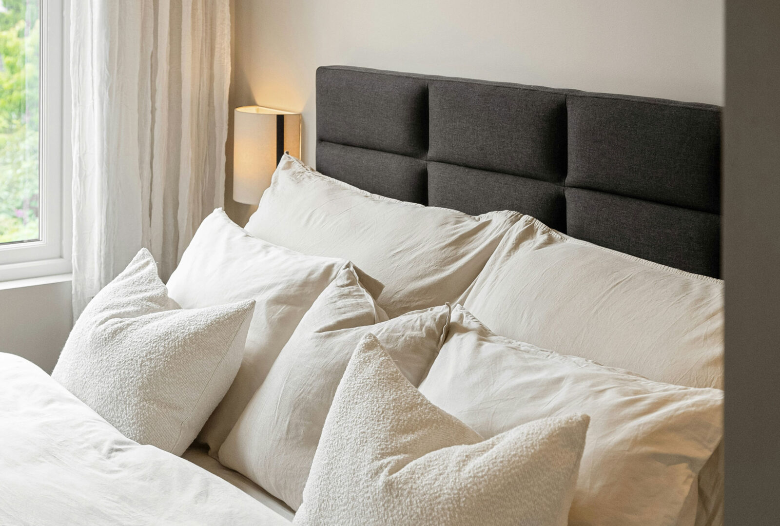 Except the existing doors and beautiful light oak flooring, every element in the room was open for reimagining. This gave the designer ample creative freedom to craft a thoughtful, cohesive space. The result would be a bedroom that not only looks beautiful but also supports relaxation and everyday comfort—an ideal sanctuary for unwinding.