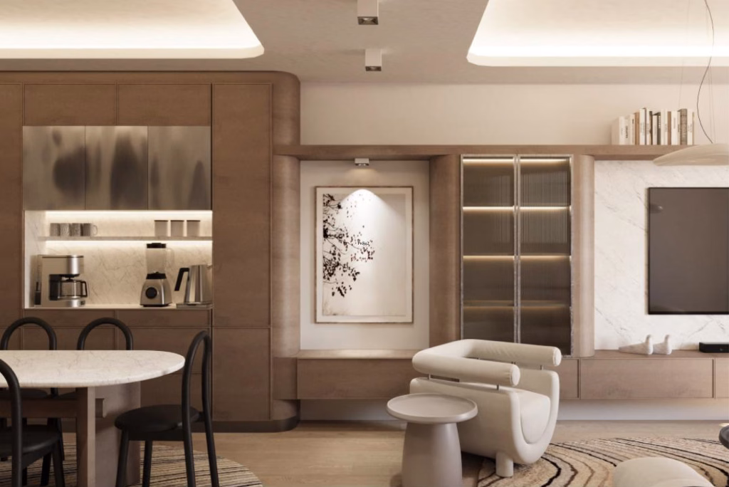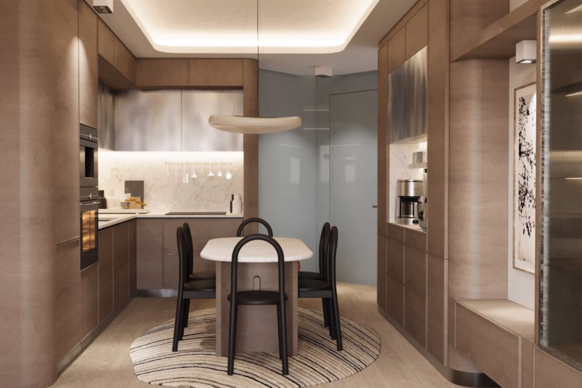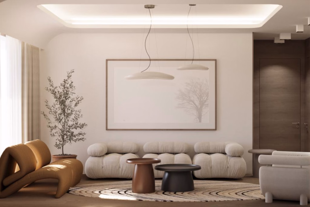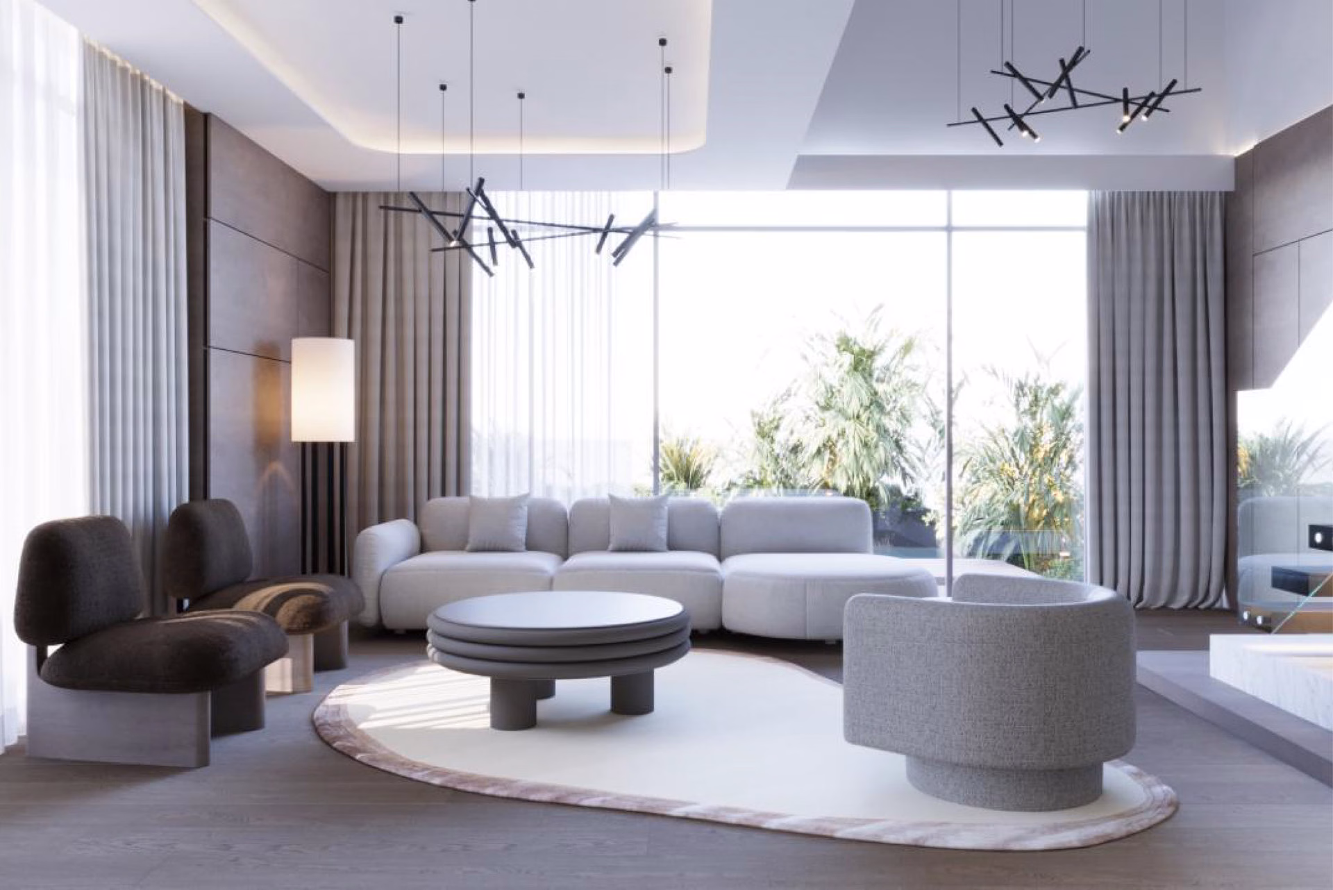 Natural textures, such as wood, stone, and woven materials, combined with rich, deep blue tones, create a harmonious flow that seamlessly connects the various spaces throughout the home. This thoughtful combination not only enhances visual continuity but also evokes a sense of calm and cohesion, making each room feel like an intentional extension of the next.